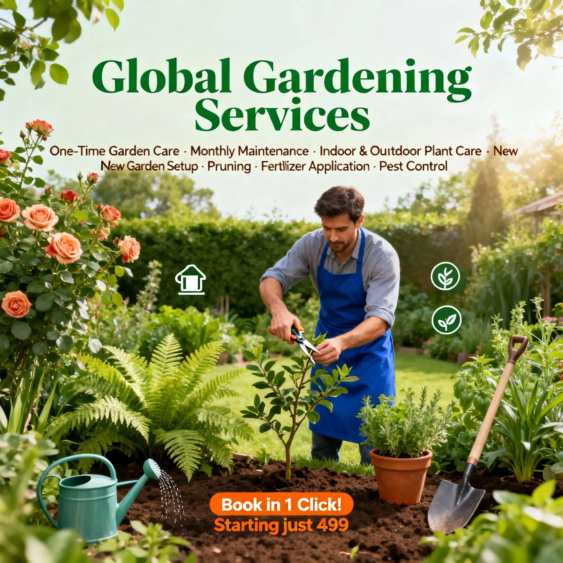 At Global Gardening, we believe a garden is more than just plantsβitβs a living space full of freshness, beauty, and peace. Whether you have a cozy balcony, a lush bungalow lawn, or a commercial space, our expert gardeners make it easy to keep your greenery healthy and thriving.